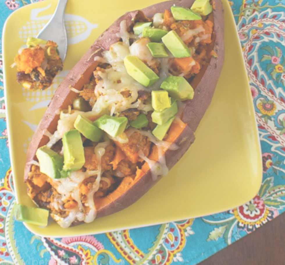This one is so easy to make, it gives you a good amount of protein too. All you need is a sweet potato, black bean burger, Colby jack cheese and some avocado. Click the recipe below in order to see what other things you can add to spice it up.