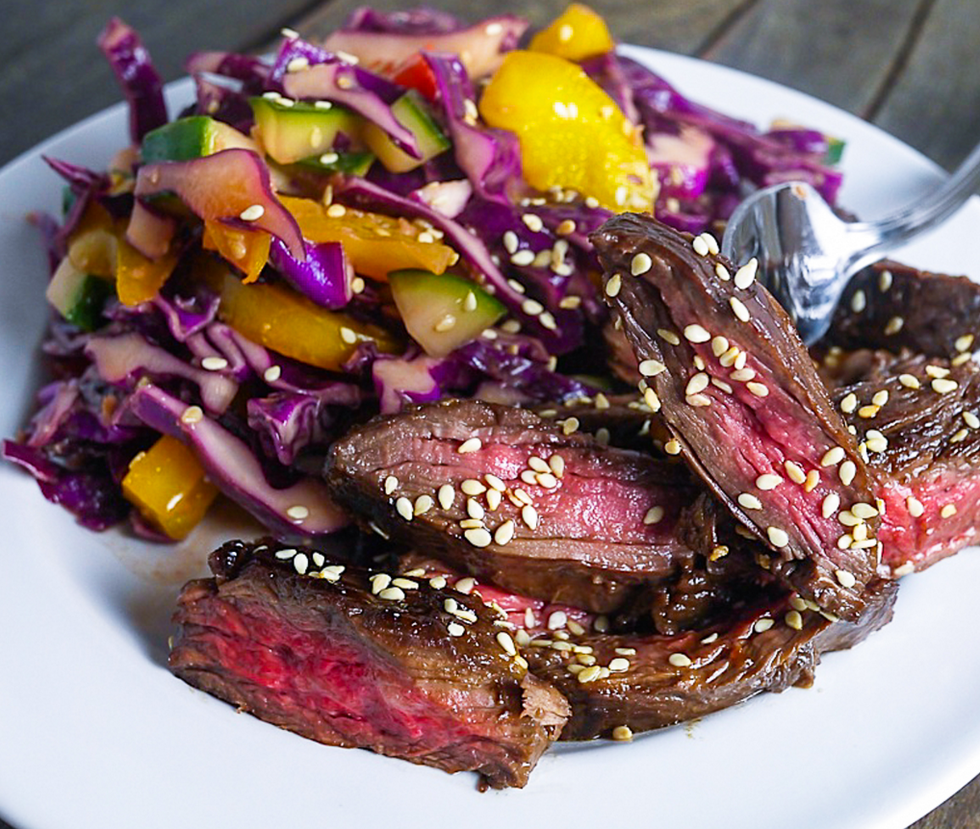 7. Spicy Steak with Asian Slaw