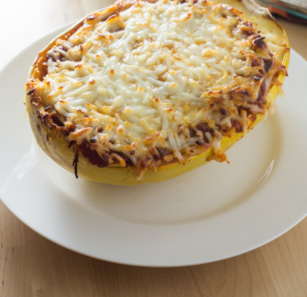 Love, love and love this recipe. Honestly, this is very easy to make, and if you aren't a fan of spaghetti squash, then you can make zucchini boats instead. It is awesome because you won't feel bad about eating Italian-inspired food. Less carbs, but still one happy foodie.