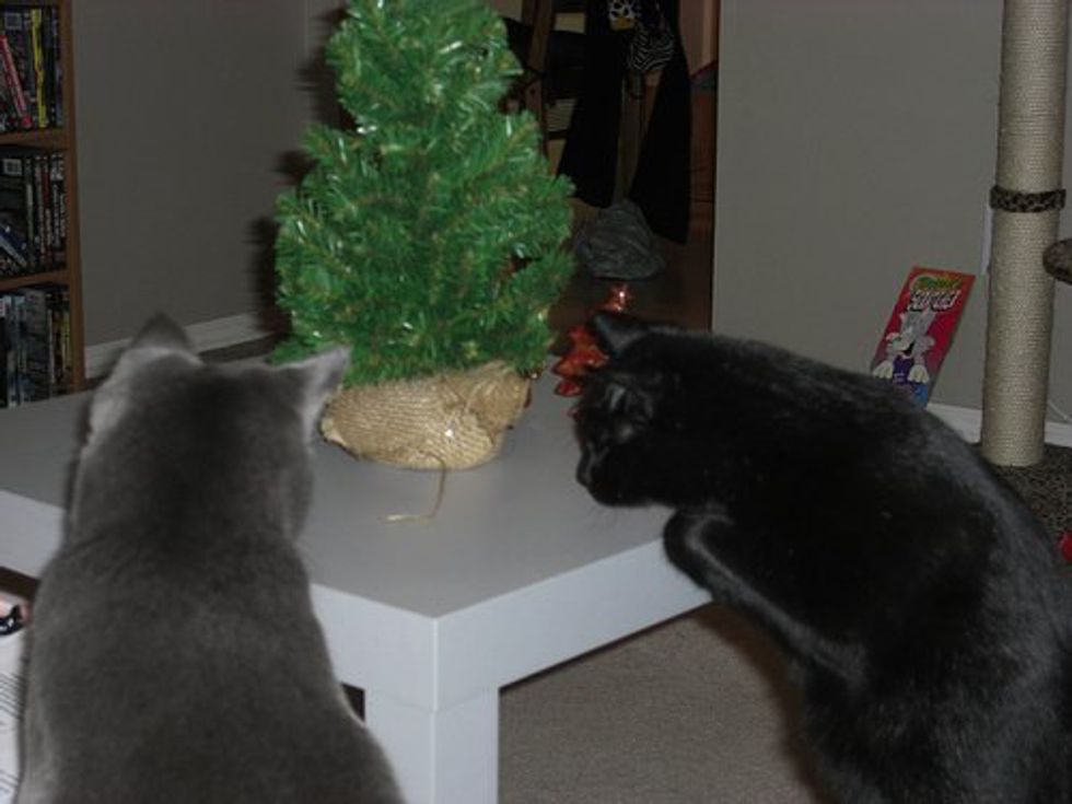 Cats and Christmas trees.