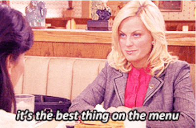 I remarked that I wanted to be Leslie Knope because of her caring and hilarious personality, plus her love of breakfast food that resonates like, in my soul.