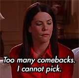When it comes to comebacks, Lorelai has the timing down perfectly, and always gets the last word. Her ability to spit out comebacks exceeds the hopes of anyone who has ever walked away and then realized the perfect thing to say.