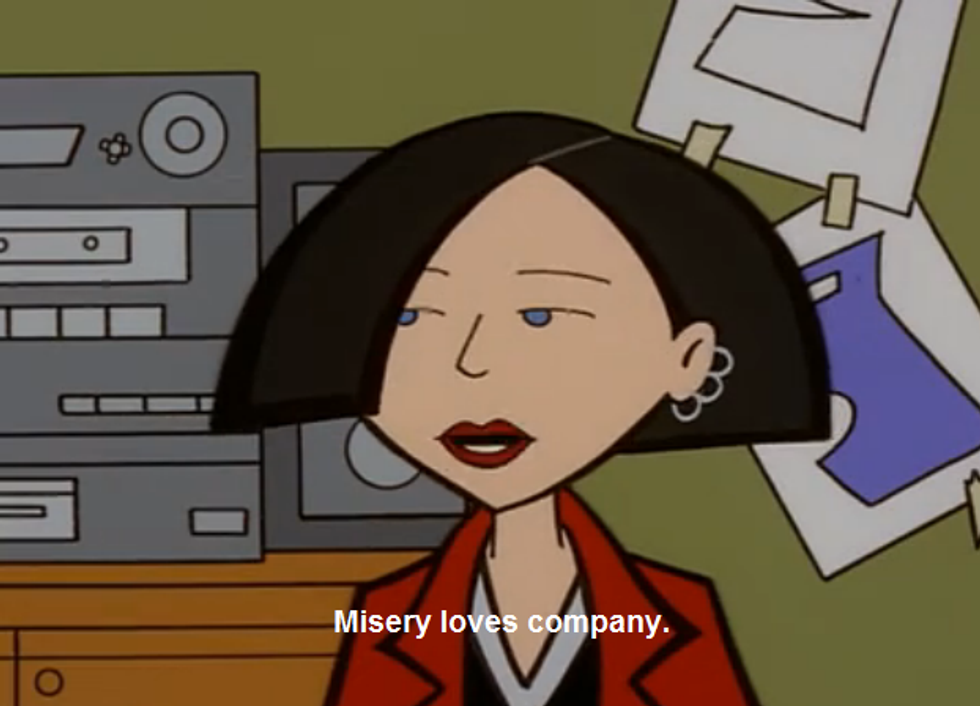 I'm sure some of you remember the cult-classic TV show Daria. The title character was a smart, cynical and brutally honest female. She was definitely ahead of her time. The show, which was a spinoff of Beavis and Butt-head, ran from 1997 to 2002. Daria made a great impression on me, and her dark, dry, and cynical humor gets me every time. Here are seven times she was my spirit animal.