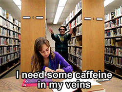With the lack of sleep, you need caffeine to help stay awake to keep on the grind of studying.