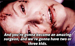 He would be the first of many character deaths via heavy machinery but we, the audience, didn't know that. In fact, we spent the entire episode thinking he was John Doe, an anonymous hero who threw himself in front of a bus to save a number. To reveal his identity, he has to carve his nickname into Meredith's palm, and from then on the tears kept flowing.