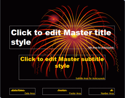 Or better yet, use this fireworks theme, because who doesn't want their entire presentation to consist of black backgrounds with yellow and white words?