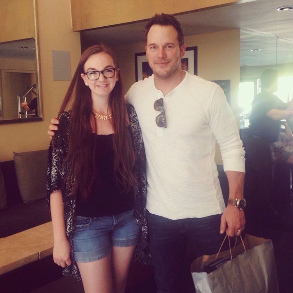 Example 4: I met Chris Pratt at a hotel on Sunset and I absolutely needed a picture with him. The first picture we took had major sun glare, so he suggested we take another. It looks like he's pulling my hair in the second picture, but we weren't trying to start a photo shoot in the middle of the lobby.