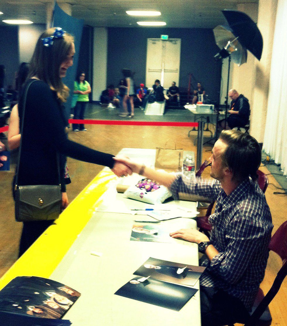 Example 7: As a life-long Harry Potter fan, I was ecstatic when I met Tom Felton at the Shrine Auditorium. Once I talked to him for a few minutes, I realized that he's down-to-earth and we joked about playing Muggle Quidditch.