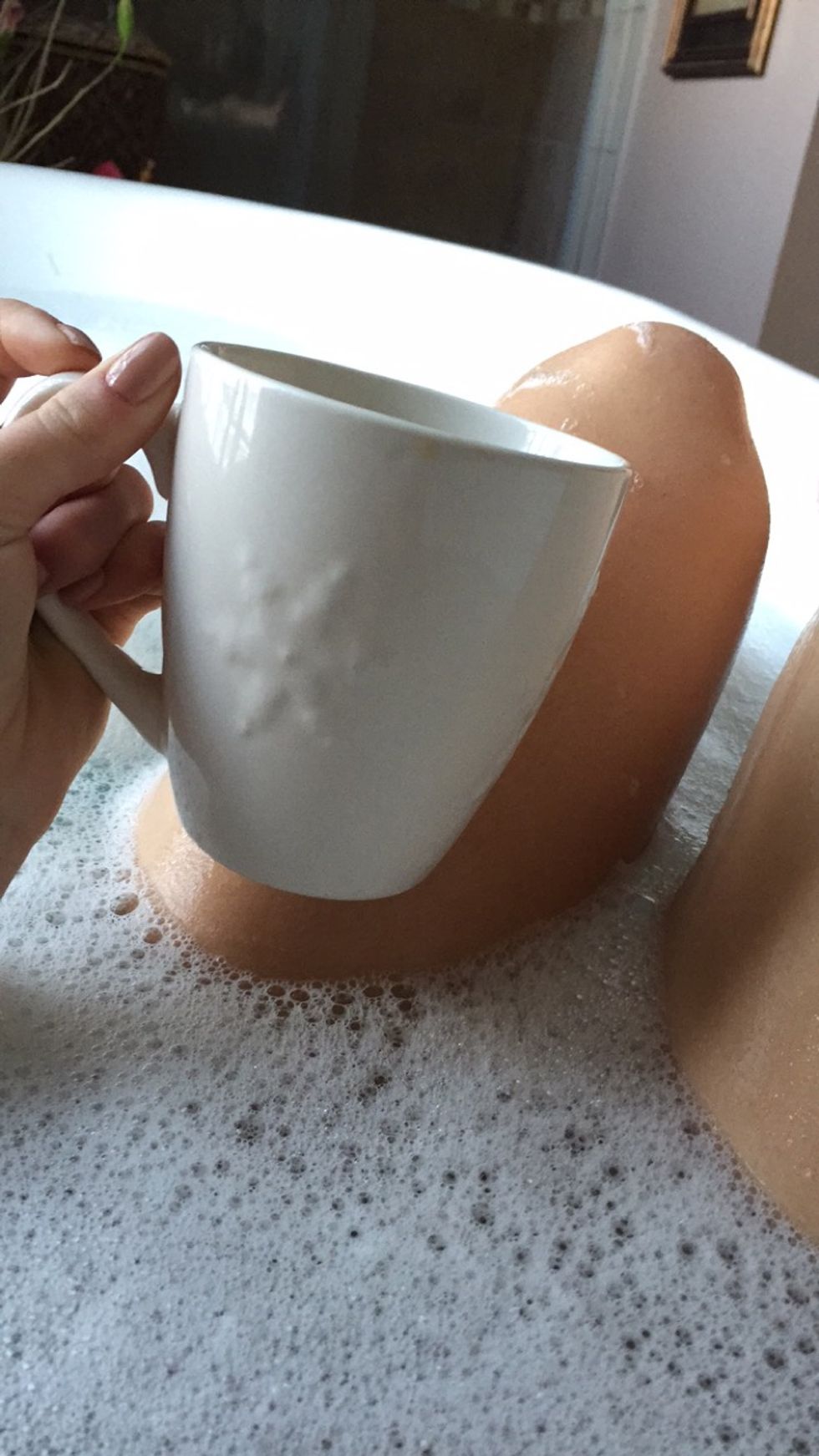 3. Take a bubble bath, drink a morning beverage, and relax.