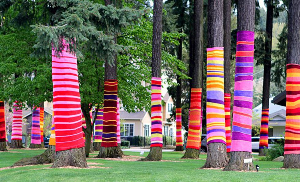 The third and final issue I will address has to do with the ethics of yarnbombing and using yarn for what some may call useless projects. Isn’t it true that this copious amount of yarn could be used for other things, like making clothing for those in need? A criticizer of yarnbombing made a rather chilling comment in response to a Tumblr post, saying “... the first time I saw yarn-bombing, I saw people sleeping under trees that were better dressed than they were.”