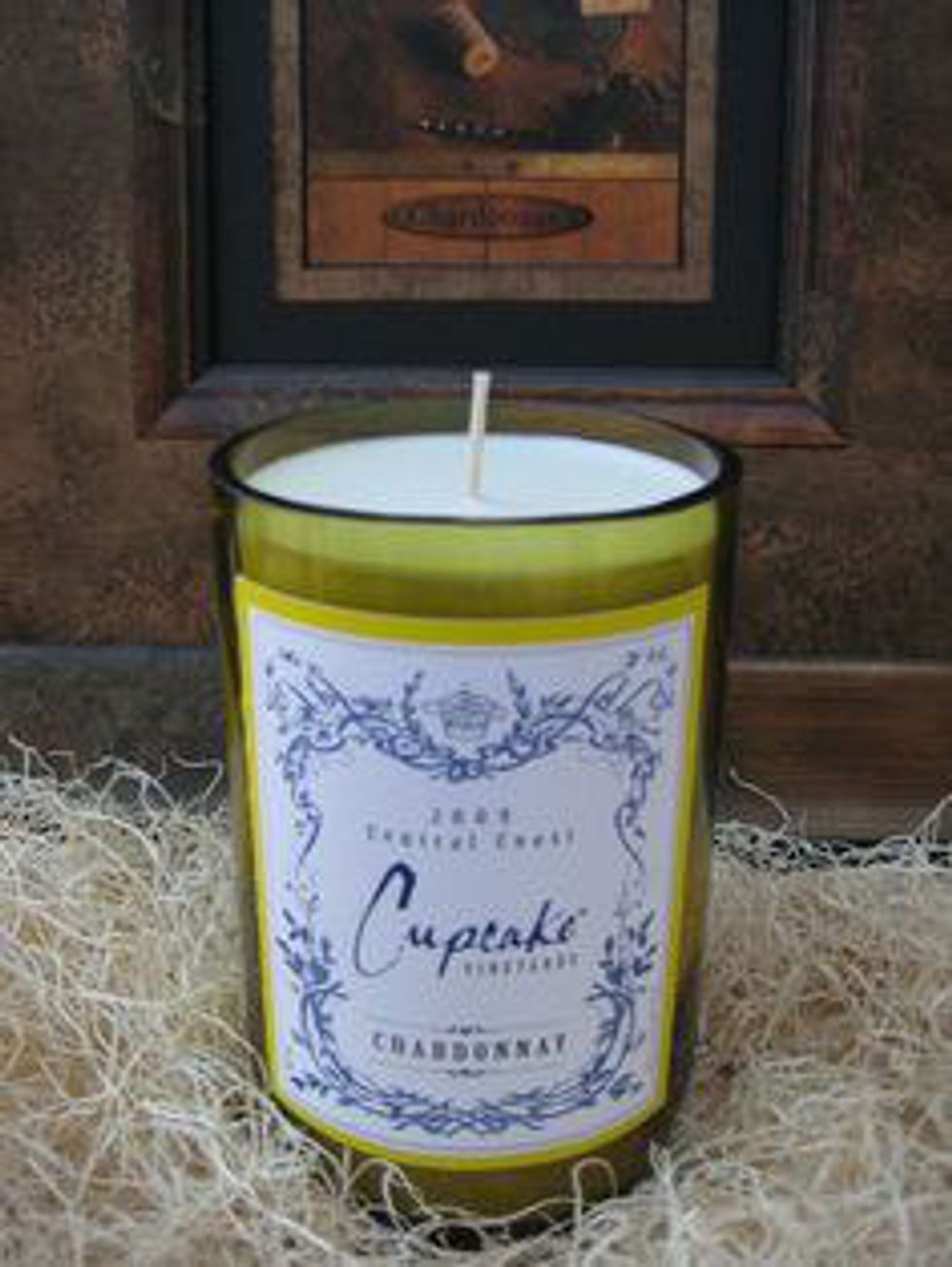 2. Cut the top off your favorite bottle and fill with wax and a wick from your local craft store, instant wine bottle candle.