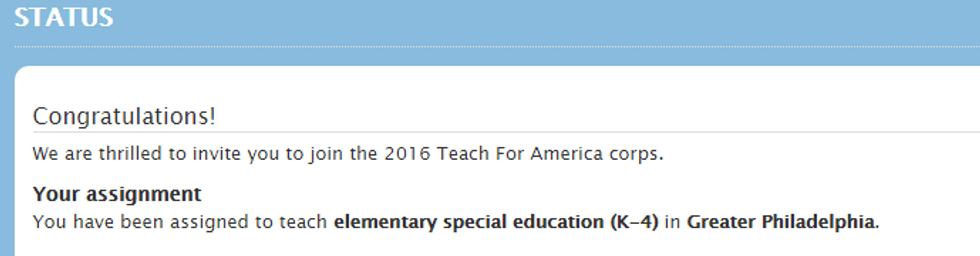 This is such a big deal for me! I don’t want to brag, but having this type of job security before graduating is pretty awesome. I was thrilled to be assigned in elementary special education because that is my major. Plus, Philadelphia is a pretty cool city and I can see myself living there.