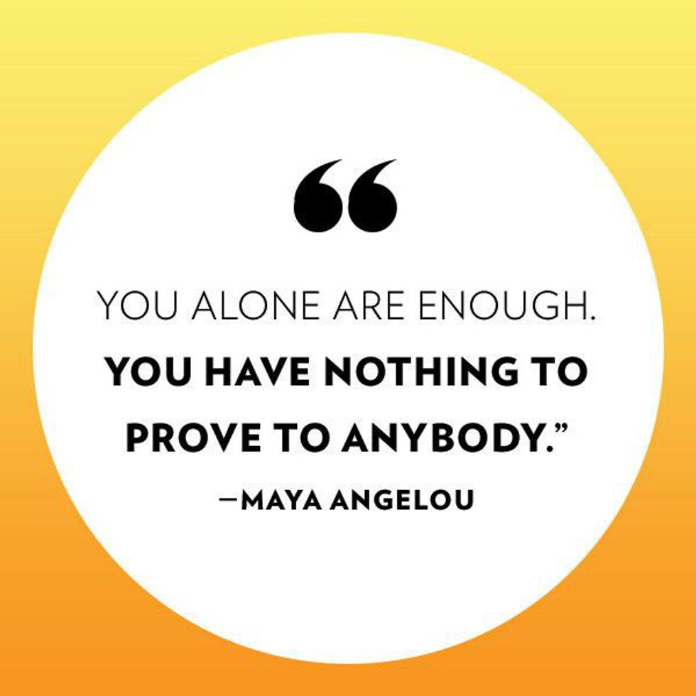 WRONG. Dead wrong. Leave it to Maya Angelou to hit the nail on the head. This lie we learn from society. You make mistakes. You have regrets. You are not perfect. We all have darkness in us, but we also have light inside. Let the light shine through. If you have to prove anything to anyone, it should be to prove to yourself that you are enough. We all have something that someone else needs. For someone you are not enough, but for someone else? You, and just who you are, are just want they need most.