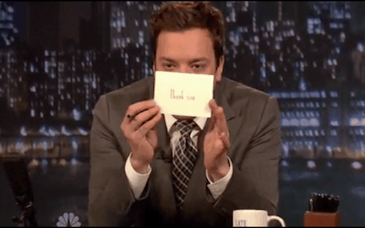 Shoutout to Jimmy Fallon for setting an example for generations to come, but hopefully the only thing that we take from his segments is to write "thank you" notes....minus the content.
