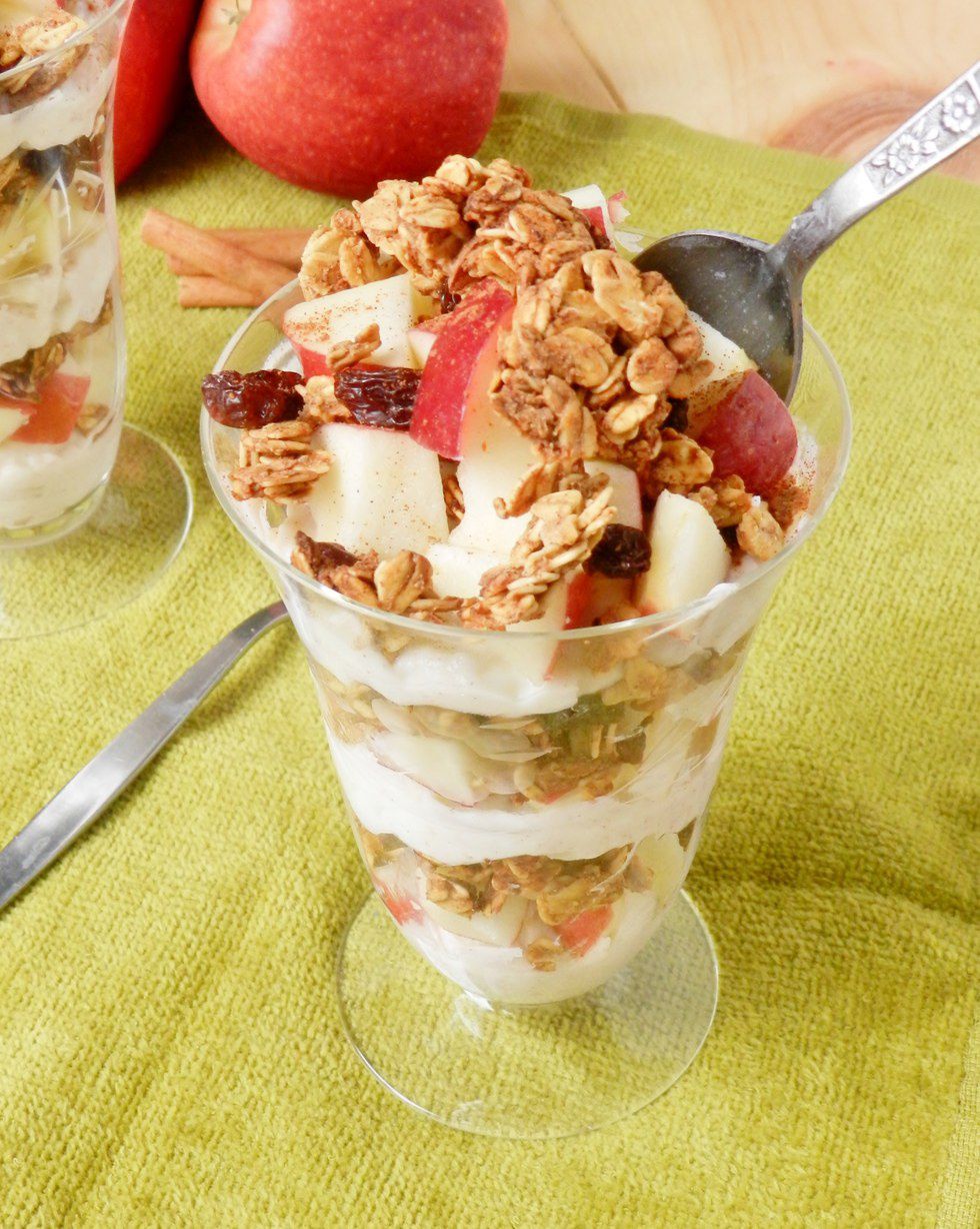 Slice up your apple and use your yogurt as a dip. I've found that more plain flavors like: vanilla, coconut vanilla, or banana cream taste best with this combination. If you're wanting something a little more filling, you can even add granola and make a parfait by cutting your apple up into miniature squares instead. Another tasty trick is to add one tablespoon of peanut butter for a thicker, more dense dip.