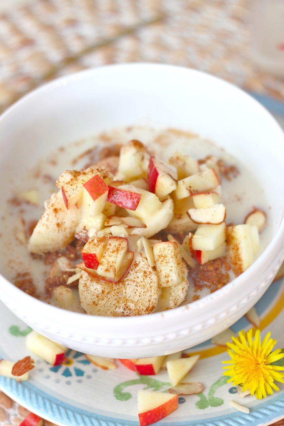 I know it sounds weird, but before judging you have to try it! I usually take about four different types of cereal with a flavor like cinnamon or honey and mix them all together. I then cut up my apple into miniature squares and distribute them evenly throughout my bowl. As I'm sure regular milk is good, I recommend trying any brand of vanilla almond milk. This snack is more like a meal, and even tastes similar to a dessert...it is definitely one of my favorites.