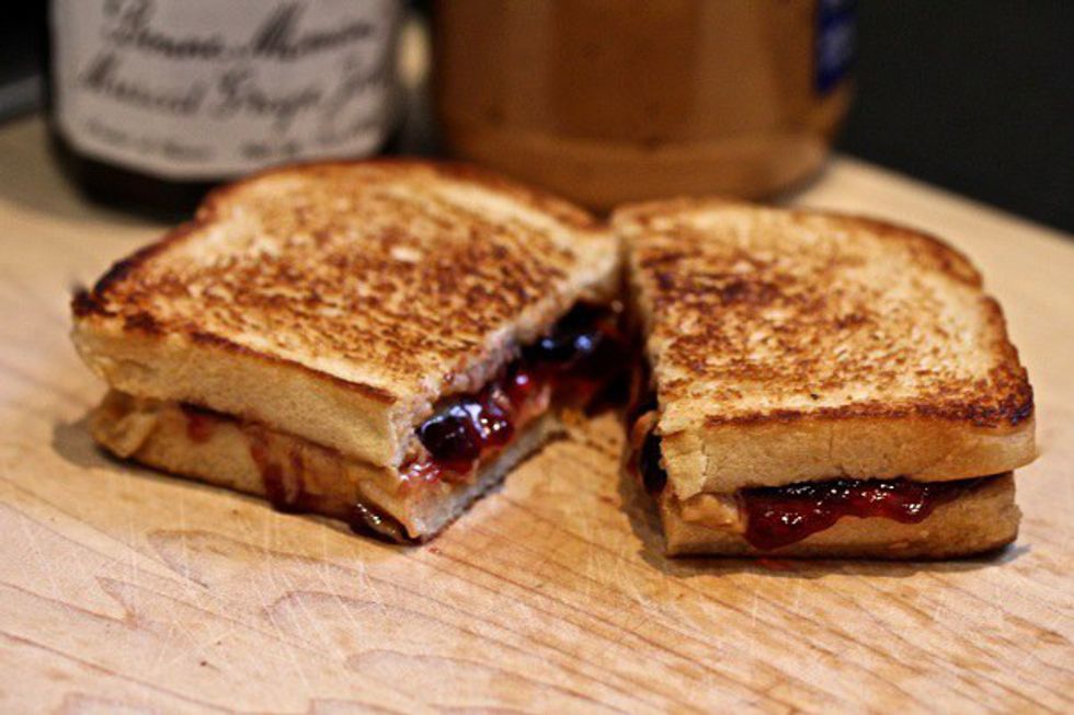 Lightly toast bread, cut your apple into thin slices and place them between the goodness of a classic peanut butter and jelly sandwich.