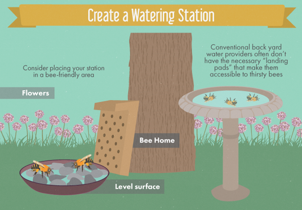 We aren't the only creatures that need water to survive! If you start seeing bees milling around your lawn or college campus, do them a favor and put a small basin of fresh water outside (maybe add some stones for them to crawl around on, too!). In return, they'll stick around and keep pollinating your flowers! Friends helping friends, right?6. Support your local beekeepers.