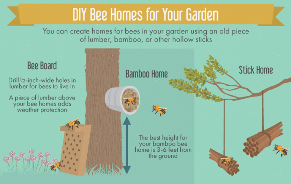 Just like the rainforest animals are rapidly losing their homes due to deforestation, the bees are losing their habitat from intensive monoculture-based farming practices. You can help restore their habitat by simply planting flowers and herbs that attract bees during a variety of seasons. By doing this, you are providing a haven for the bees and a beautiful, vibrant garden for you. If you'e feeling crafty, you can also create DIY bee homes. If you're living on campus, get together with your fellow students and see if you can set up some bee homes around your school.