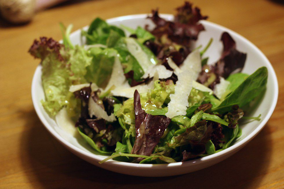 Yes, feasting upon Cesar salad and bread sticks before our meal is a myth.Our salad is topped with oil and vinegar (what is dressing?)