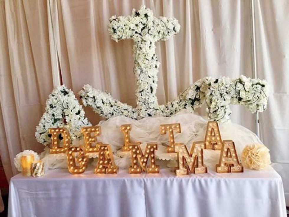 Somehow, in the process of becoming a Delta Gamma woman, the cream colored rose has become an acceptable flower. In fact, it might be the only acceptable flower. And it's all ours! (snaps to the American Rose Society)