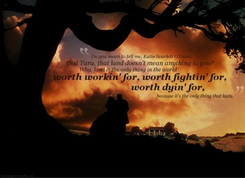 Throughout the film, Mr. O’Hara keeps telling Scarlett that the land is all we have. This is true still to this day, we rely on the earth for everything and we need to respect and preserve it while we still can.