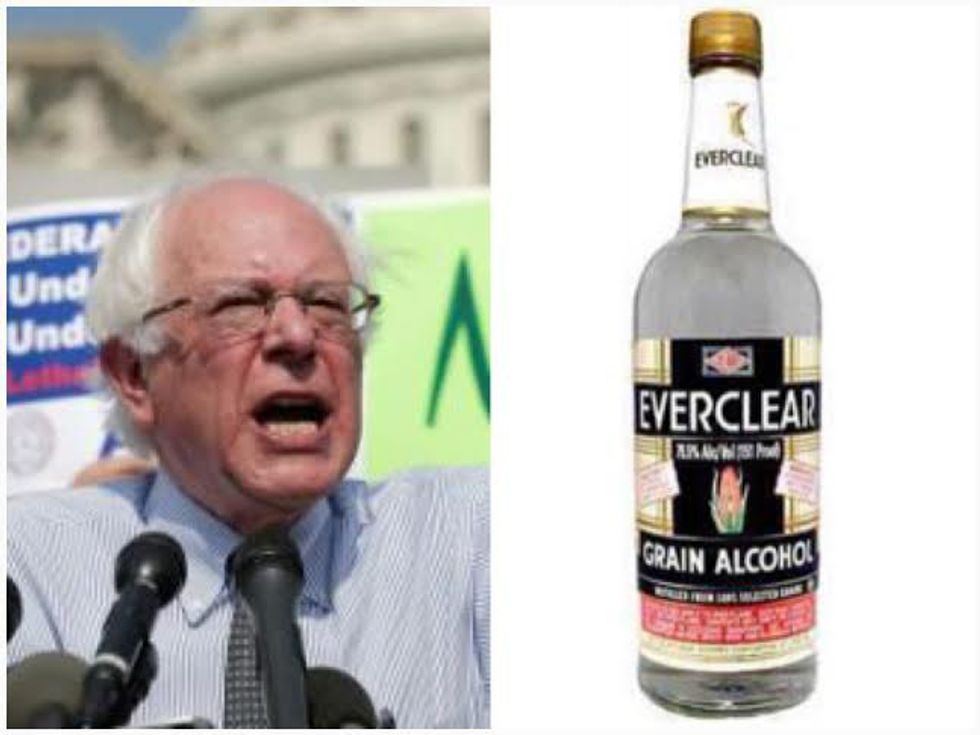 I would take shots of something warm with Bernie because you’ve gotta “feel the Bern.” But I have to rag on him a bit: Since he looks like a bottle of Everclear, that’s what we’re drinking. We should both prepare to die.
