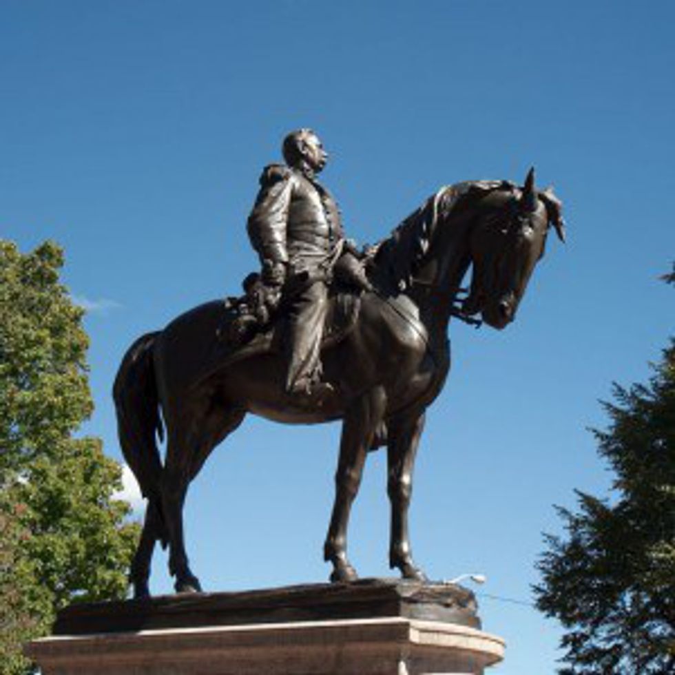 Within the town of Milford, Massachusetts stands General William F. Draper upon a horse. The monument was given to the town by the general's wife, Susan, two years after his death. The famous Daniel Chester French, known for designing the Abraham Lincoln statue at the Lincoln Memorial, also designed this work of art. General William F. Draper answered the call and was enlisted in the 25th Massachusetts Volunteer Infantry; he was 19 years old. On May 6th, 1864, Draper was shot through the body and captured during the Battle of the Wilderness. Fortunately for the soldier, Draper was eventually recaptured by fellow soldiers and promoted to lieutenant colonel. After the war, Draper was promoted to brigadier general and resigned from the military. Having lived a full and heroic life General William F. Draper died on January 28, 1910 in Hopedale, Massachusetts.