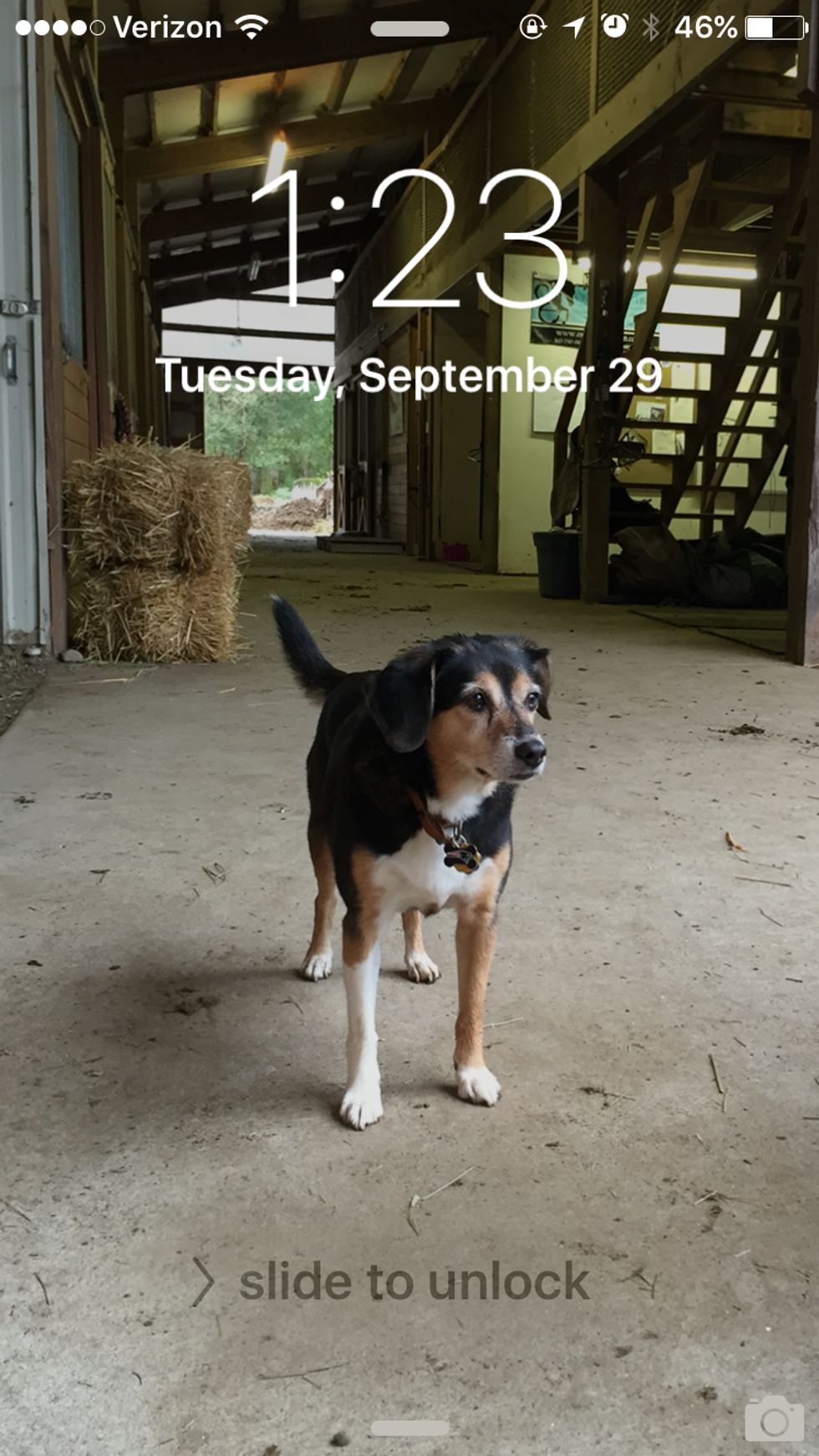 I can't resist pressing the home button during class to see a picture of my dog. It makes me feel excited to go home because I'll go see her.