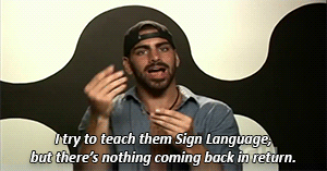 Just because sign language isn't spoken out loud, doesn't mean it should be excluded. It's an important form of communication as well. How can any conversation occur if nothing is reciprocated? Sign language isn't a one way street. The other should attempt to sign even if what you're signing is wrong. That at least shows some effort.