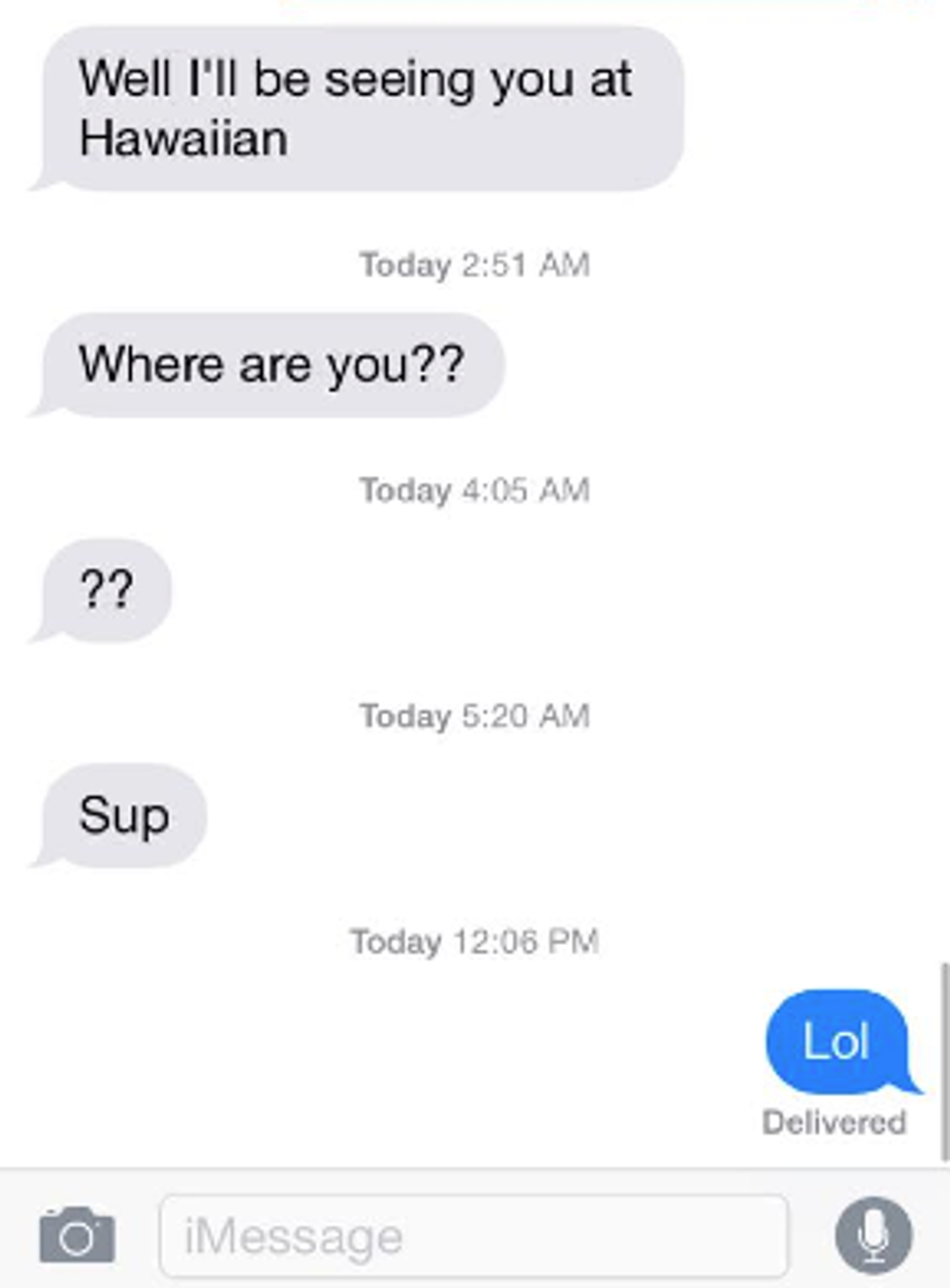 Note the time stamp. Pizza has a thousand times more respect for you. It will text you three days in advance because you’re a busy person and pizza wants to fit into your schedule, not the other way around.