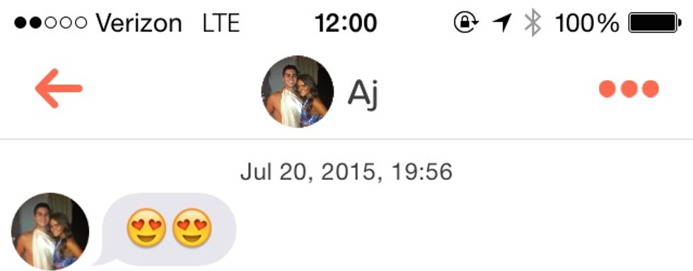 Of course, this is all dependent on the kinds of people that I swiped right versus the kinds of people that I swiped left, but I was generally surprised with the kinds of messages I got. We've all seen those Tinder horror stories, where girls post their screenshots of misogynistic messages from random guys attempting to flirt; so, I was expecting something similar and I was a little nervous. However, most of the guys were just straight-up nice. Some of them chose to open up with a message that referenced my bio (see above), and some of them just started out with a nice "Hey, how are you?" On the DL, I wanna be friends with some of those guys. Honestly, I really wish Tinder hadn't somehow become associated with the whole hookup atmosphere, because I had some genuinely nice conversations. It was like speed dating, but just to find someone to talk to for awhile. Nothin' wrong with that, right?