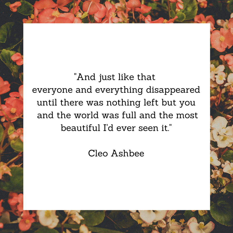 While Cleo Ashbee is originally from California, she resides here in Eau Claire, Wisconsin part-time. Her books are popular with UWEC students and you can find her quotes pinned on dorm walls and reposted on social media. These are some of my favorites.
