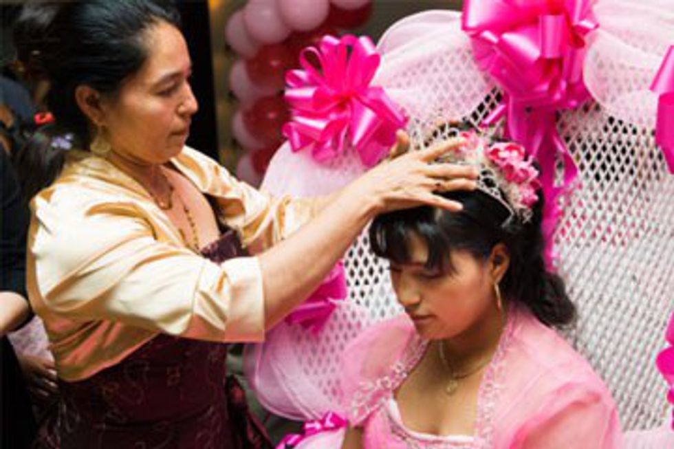 You may be familiar with the Hispanic tradition of the Quinceanera, which is the celebration of a girl's fifteenth birthday. On her birthday, the girl traditionally renews her baptismal vows, and then the entire family gathers for a fiesta full of food and celebration, and the girl wears a beautiful elaborate gown.