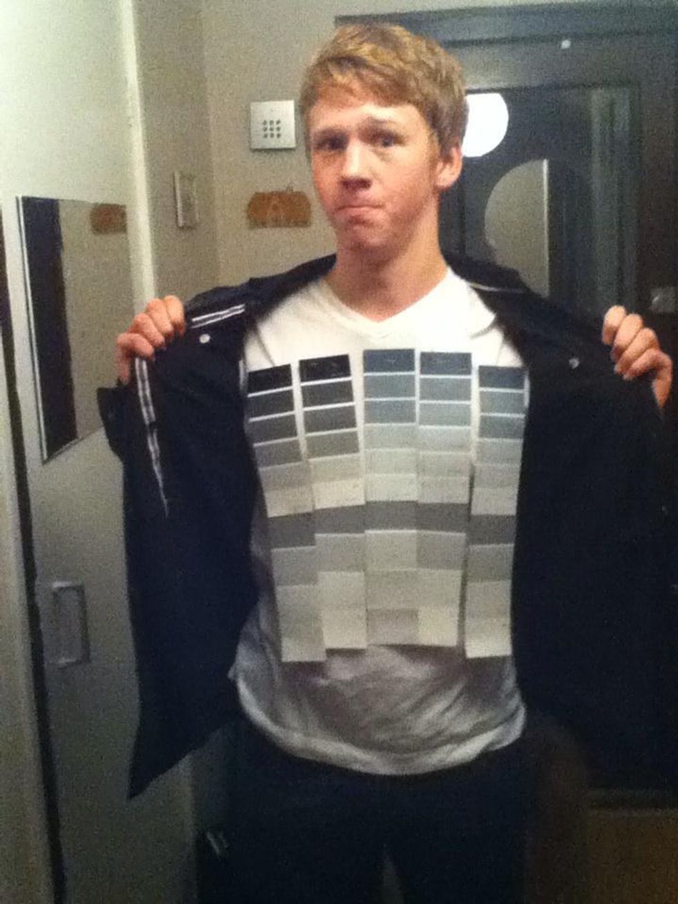 This is probably one of the easiest costumes to date. Throw on some neutral-colored pants and a tee, then run to your Walmart or Home Depot paint section, grab some grey swatches and stick them on your shirt (or your whole outfit!) Quick, easy and best of all: free.
