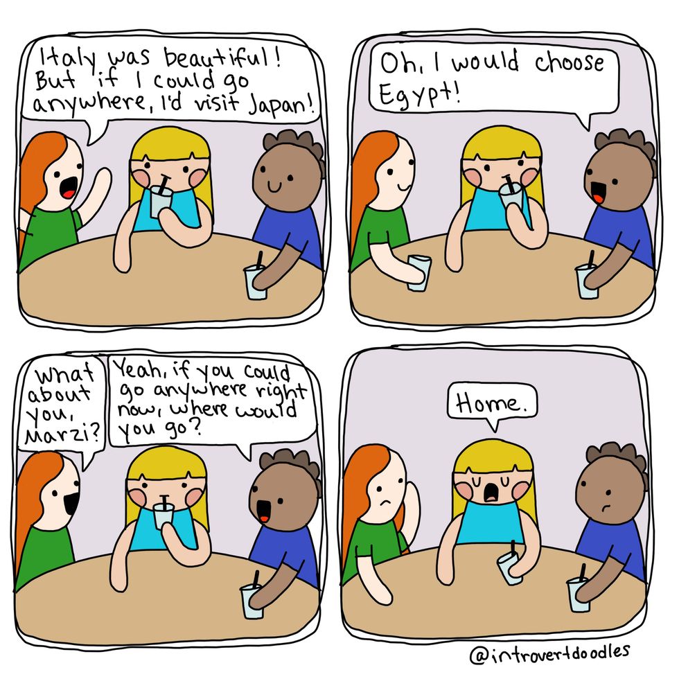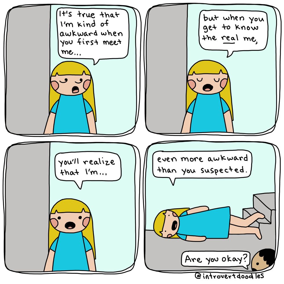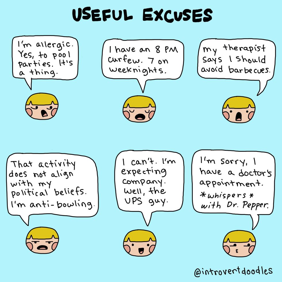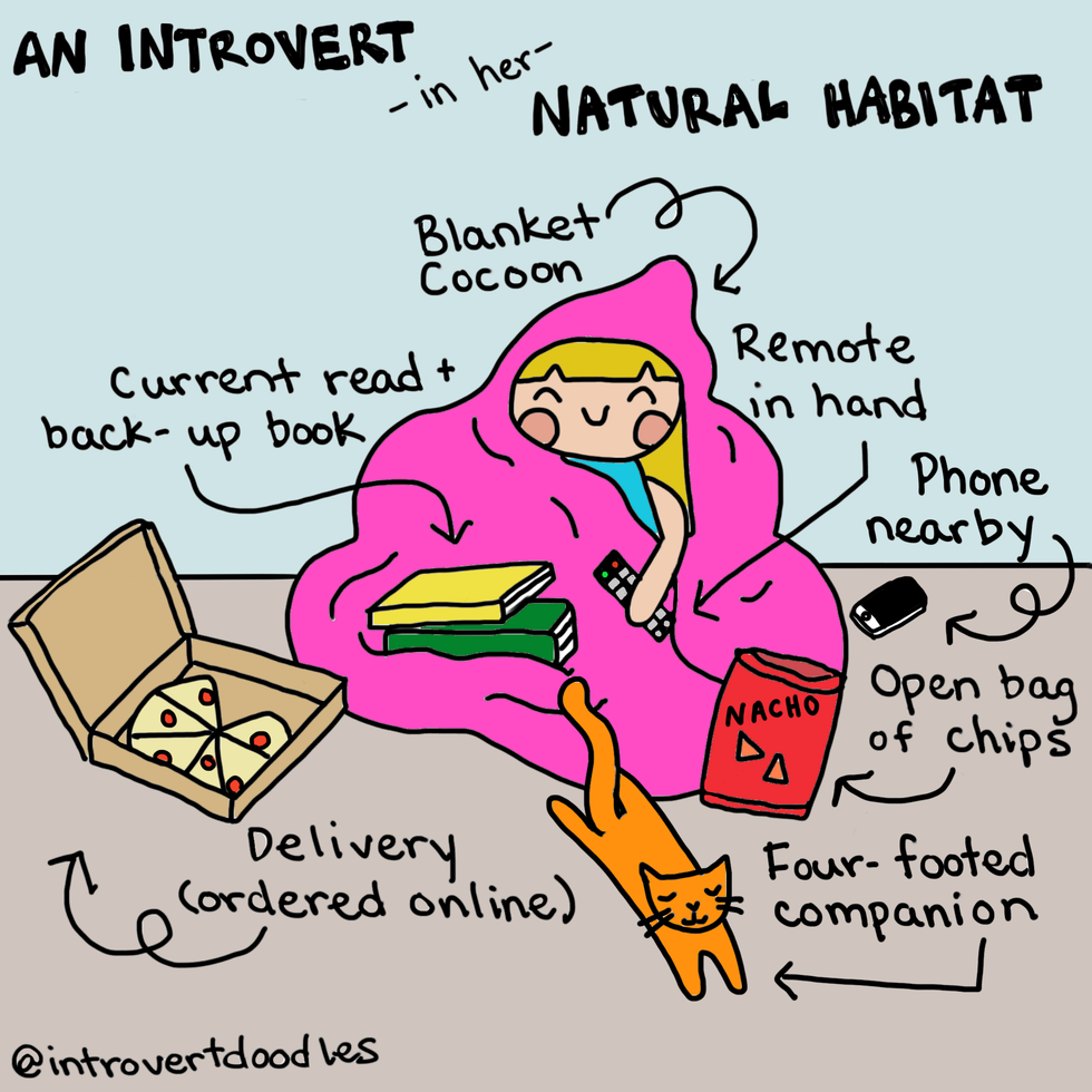 Being an introvert doesn't mean I don't like people. It can actually become exhausting for me to spend time around large groups, and I can "recharge" by spending time alone. Just because I'd choose a quiet evening at home rather than a social gathering shouldn't define me as unsocial. A while back, I came across these amazing IntrovertDoodles by the talented Marzi. She is an introvert living in an extroverted world, like many of us, and has chosen to use her creativity to create comics for other introverts out there! Her doodles perfectly describe the struggles introverts go through, and hopefully they will shine a light on why being different isn't a bad thing.