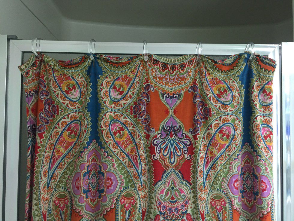 Pretend the top of the shower door is the rod you would normally hang the curtain on and do it the exact same way. You will probably need to fold it over at least once, but make sure the holes are lining up. This makes it easy to share a bathroom without needing to see the awkward outline of your roommate’s naked body.