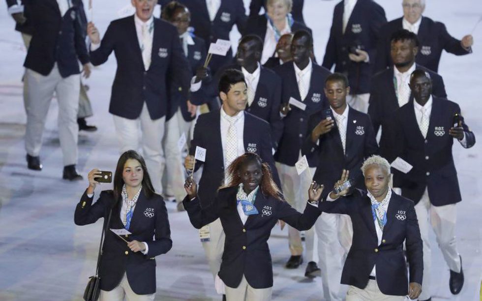 10 refugees are competing in the 2016 Rio Olympics and were greeted by the crowd warmly as they walked through the opening ceremony together.