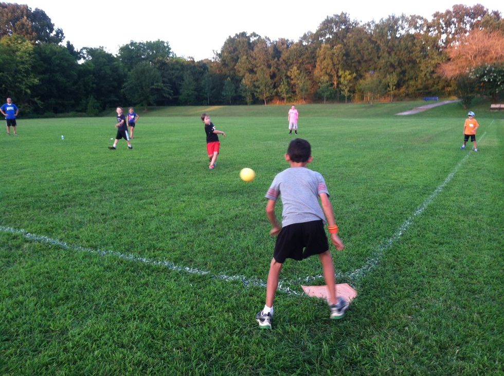 Recess time meant playing kickball
