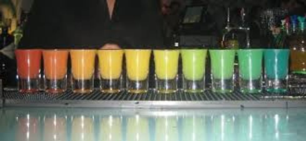 Have you seen the drink that pours out a freaking rainbow!?!?! I have and the thing is they aren't as strong as everyone thinks! Wanna know what is in it? Pineapple juice, grenadine, vodka and blue curacao...yeah...that's it. Simple enough even an Art History major could remember it! hahaha just kidding but make sure you have the items necessary to make it!
