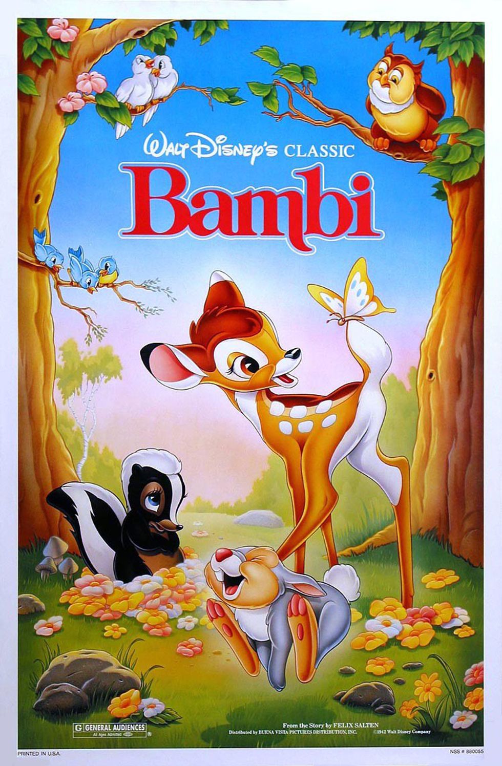 Bambi was a simple childhood film that is about a young white-tailed deer, his parents, and his friends Thumper, Flower, and Faline (a childhood friend and future partner for Bambi). I would tell you what happens next, but you have to watch it to find out!