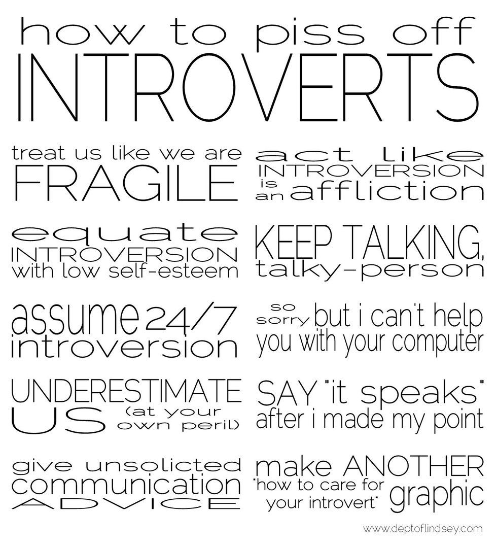 Introverts aren't afraid of people. Introverts don't talk for the sake of talking. If you want to talk to an introvert, just start talking.