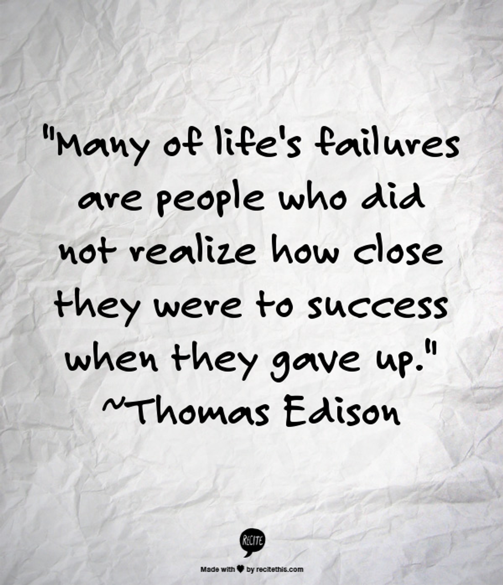 9. “Many of life’s failures are people who did not realize how close they were to success when they gave up.” – Thomas Edison