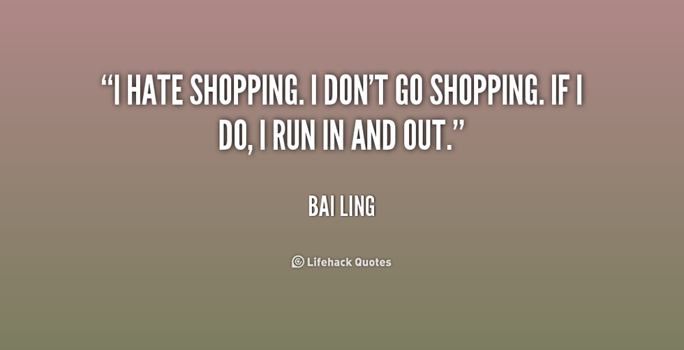 Well, I'm not a fan of it, anyway. Shopping gives me anxiety. I just want to go in a store, find what I'm looking for, and get out - no hassle. But - I have to try everything on before I purchase it. I don't like having to return something if I find out later that it doesn't fit as I imagined it would. So to save myself that trouble, I give myself other trouble - the torture of trying on tens of clothing items, only to find that only about five items are actually decent on me.
