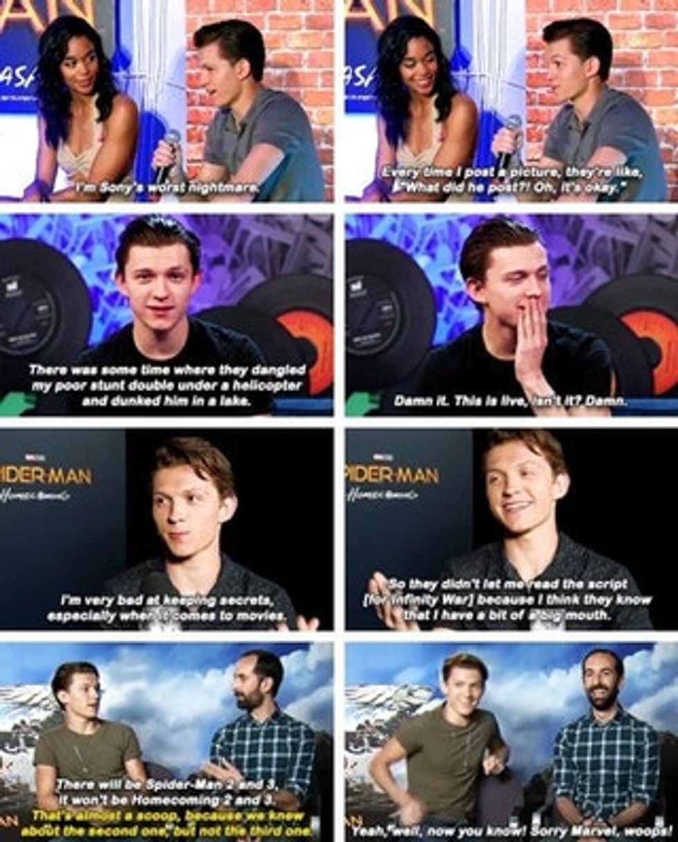Both Sony and Marvel keep a stern watch on what comes out of this boy’s mouth on social media and in interviews alike. He has been known to spill some Marvel related secrets every now and then. It’s so bad that his Avengers Co-Stars know to not feel bad when cutting him off in interviews in order to keep the secrets that Marvel has planned.