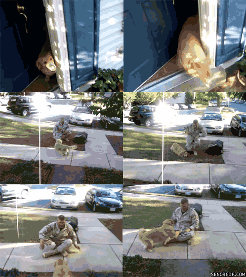 I love cats just as much as the next girl, but they are EVIL (in the most endearing way), especially toward dogs. As this gif portrays, Goldens tolerate their evil behavior, and sometimes pat them on the head for their good work.