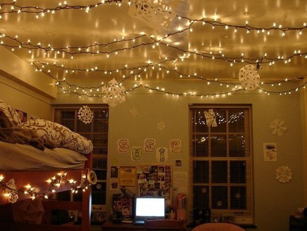 A common issue people have with their roommate is dealing with the lights. Like if your roommate wants to go to bed early but you're still cramming for a test, Christmas lights are a happy compromise. Hanging them along the ceiling is adorable and helps to create a homey feel!