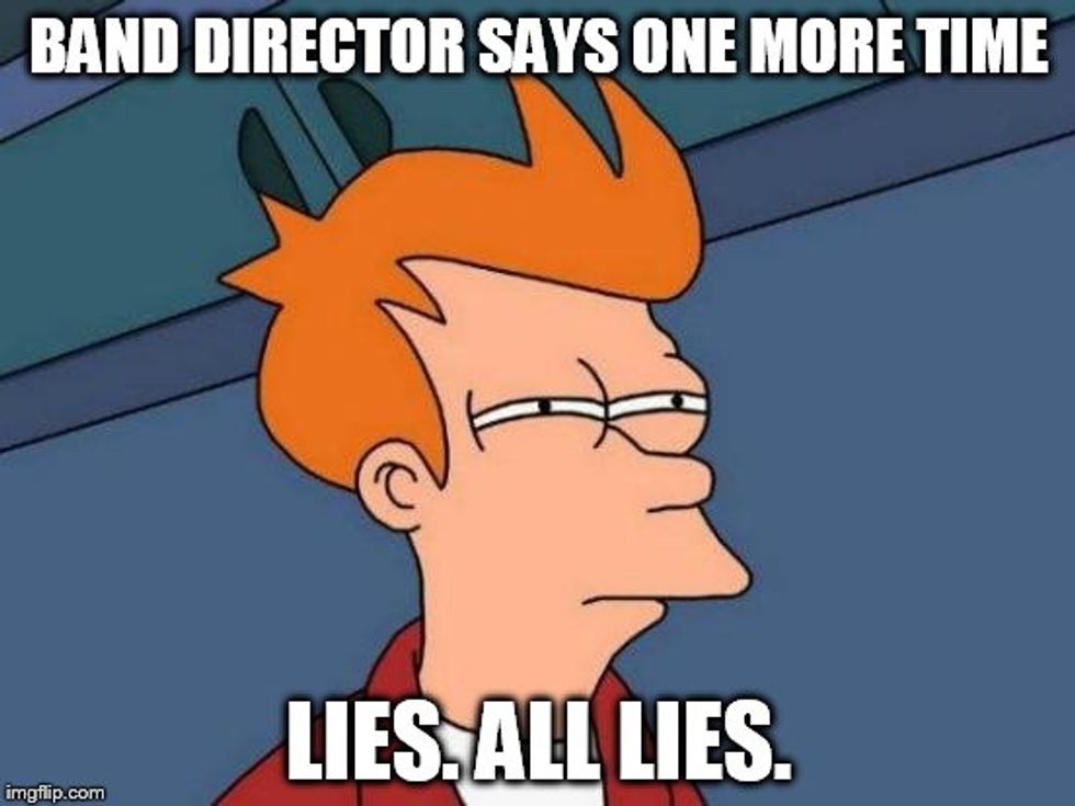 Whether it be a band director or a parent, you know that "just one more time" means until you get it right.