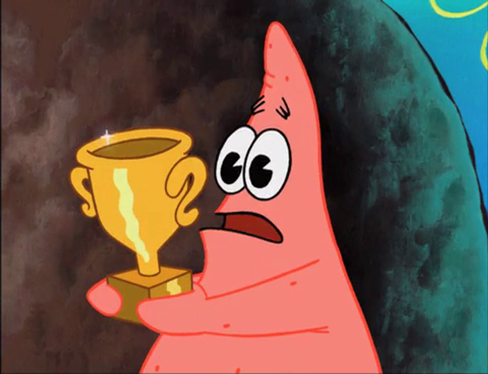 Spongebob has received many awards for various things throughout his life, but Patrick has not. But he does not let that stop him from always being who he is and trying his best. He isn't the best at everything, but he is the best at being Patrick.