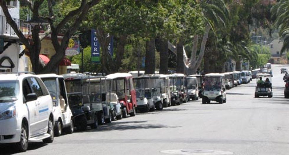 Golf carts. Golf carts as far as the eye can see! Avalon's residents use golf carts instead of cars to get around mainly because gas is extremely expensive, but the streets are very narrow as well. And the cherry on top, there's a waiting list to get a car on the island... that list is 20 YEARS LONG! I'll take my little golf cart now, please.